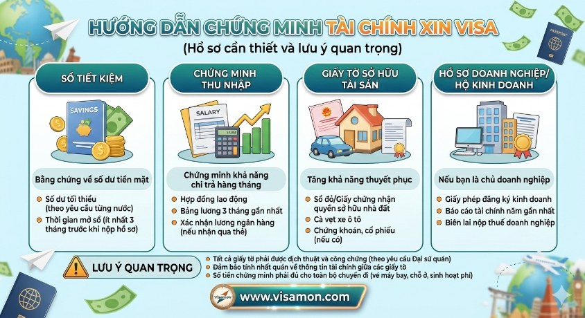 Nếu bạn đang cần hỗ trợ về chứng minh tài chính xin visa du lịch, du học, thăm thân hay công tác, VisaMon với đội ngũ chuyên gia giàu kinh nghiệm sẵn sàng đồng hành cùng bạn. Chúng tôi giúp bạn chuẩn bị hồ sơ rõ ràng, đúng chuẩn và tối ưu hóa cơ hội thành công.